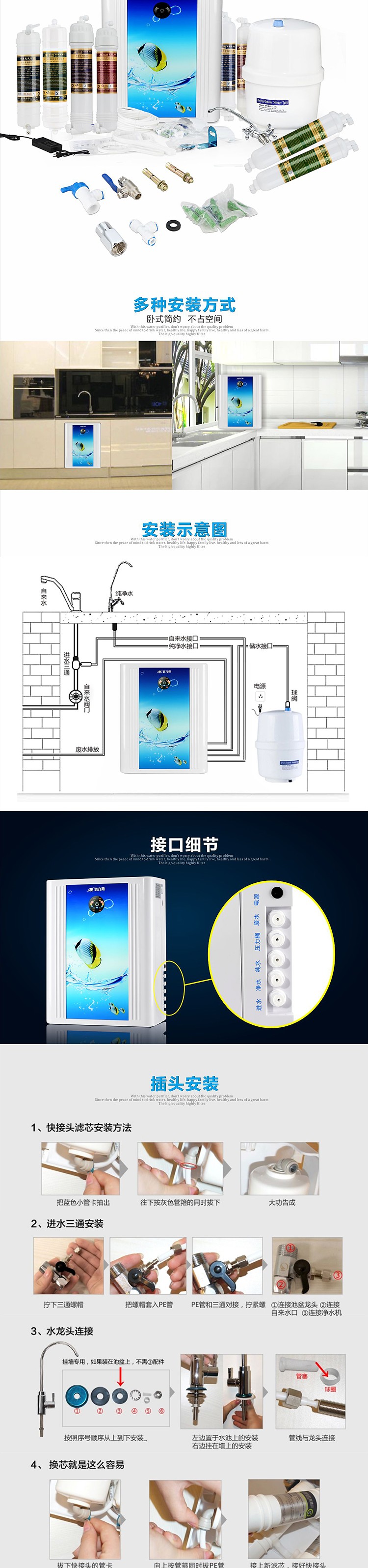 安全簡便:全部水路通道采用食品級管道,耐高溫,耐腐蝕,讓客戶用的更加放心,易拆裝濾芯,有效減少二次污染。并符合國家衛生凈水標準。